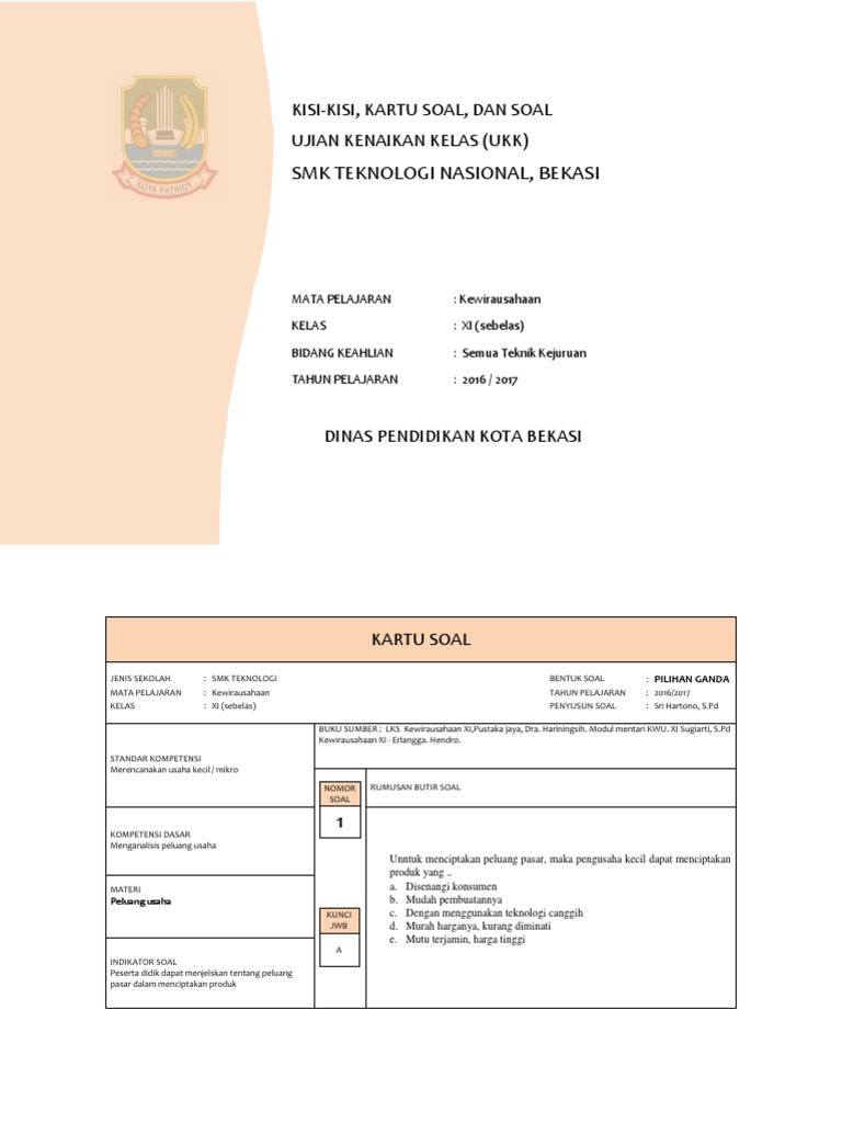 Soal Kewirausahaan Pilihan Ganda Dan Jawabannya Peranti Guru from imgv2-2-f.scribdassets.com Maybe you would like to learn more about one of these? Check spelling or type a new query. We did not find results for: